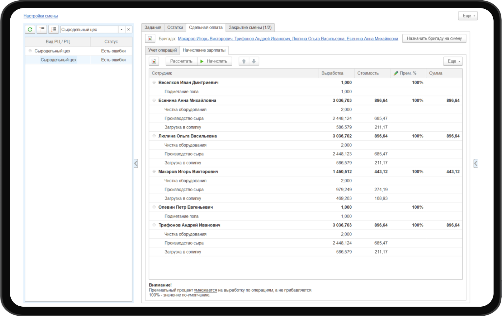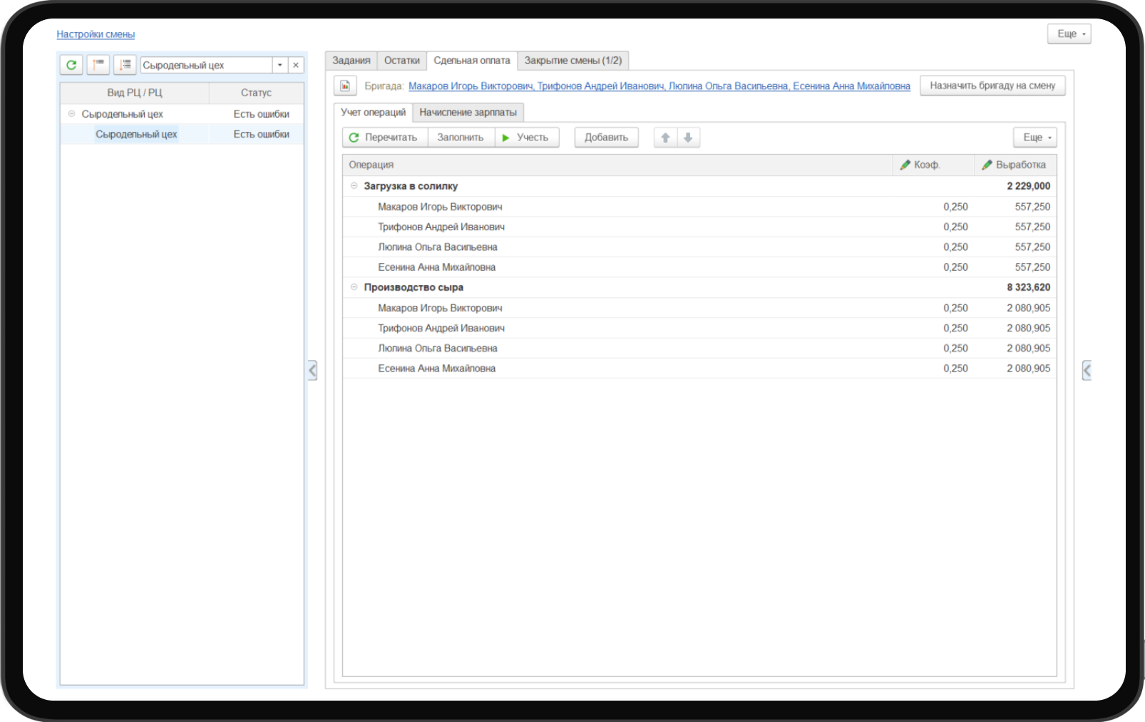 Для удобства учета выработки и расчета заработной платы весь необходимы инструментарий встроен в рабочее место мастера цеха