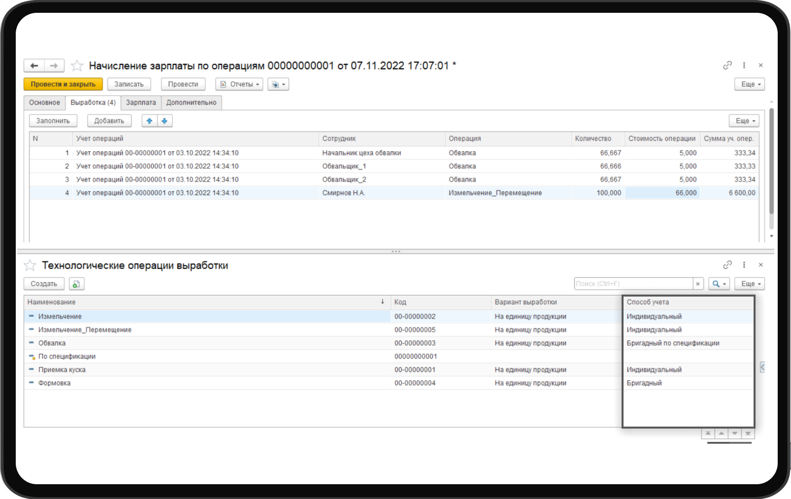 Система учитывает выработку только по фактически совершенным операциям, снижая вероятность ошибок